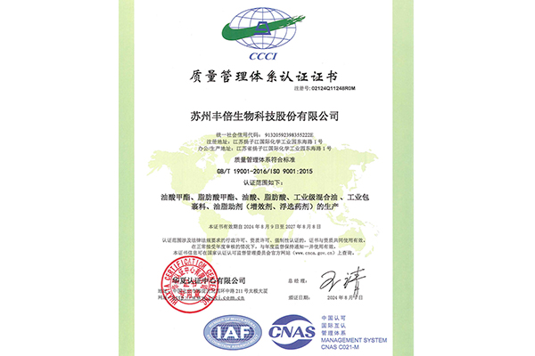 蘇州豐倍生物科技股份有限公司是一家天然油脂資源綜合利用領域的高新技術企業,主要以天然油脂生產資源化產品?;陂L期的研發投入和產業實踐,公司在天然油脂資源綜合利用的深度及廣度上不斷拓展,形成了“工業油脂—生物燃料(生物柴油)—生物基材料”的油脂資源再生產業鏈。此外,公司還依托自身油脂綜合利用核心技術和渠道優勢為客戶提供油脂化學品。